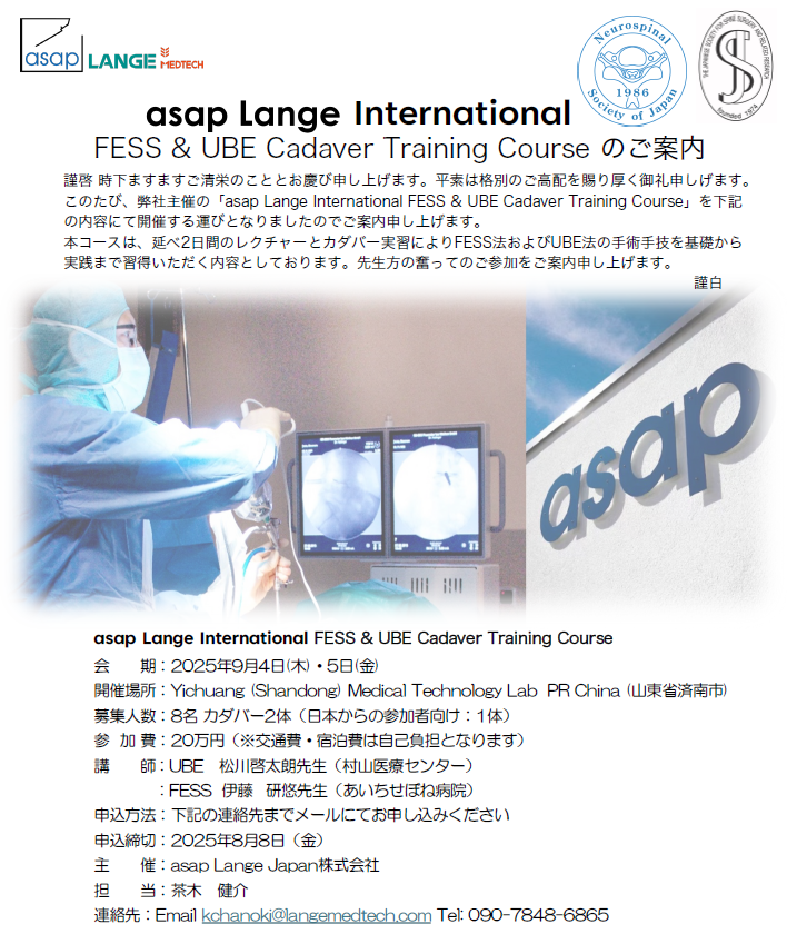 Asap Lange International FESS & UBE Cadaver Training Course 開催のお知らせ